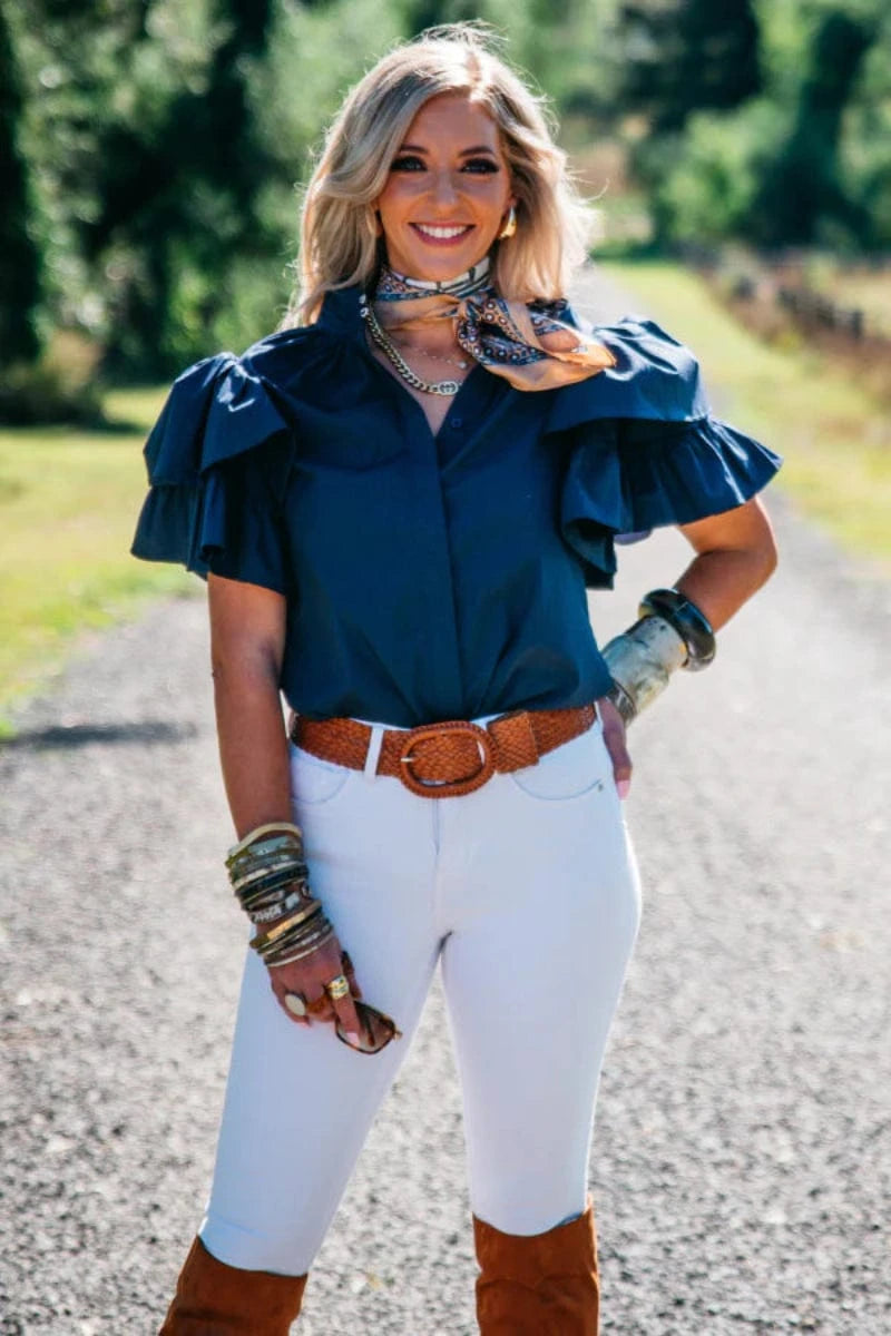 Hitchley & Harrow Shirt Womens Ruffle Sleeve