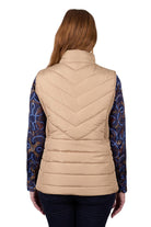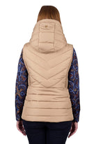 Water repellent fabric, unique quilting design at front and back, Thomas Cook hand drawn digital PRINTSed lining, rust proof metal accessories, premium quality zip closures, detachable hood, front zip pockets, storm flap, quilted waist shaping to flatter the figure, TC internal trims and pockets, horseman embroidery on chest.