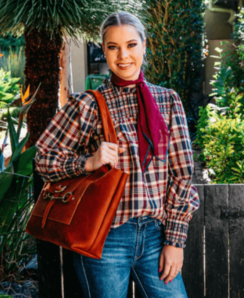 Crafted from classic plaid featuring navy, cream, maroon and orange, this style exudes versatility. It can be effortlessly tucked into jeans for a chic look or left out over skinny jeans with flats for a relaxed vibe. Long full sleeve with an elastic cuff that may be worn pushed up on the arms. The shirred neckline is a standout design feature. Shirred cuff with frill. This top is roomy and relaxed in its cut. Model wears XXS.