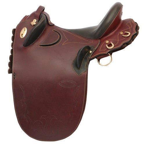 Designed for outback station work. Features a full fibreglass tree, full felt panels and flank girth rigging. Knee pads are 3½" with 2" thigh pads.