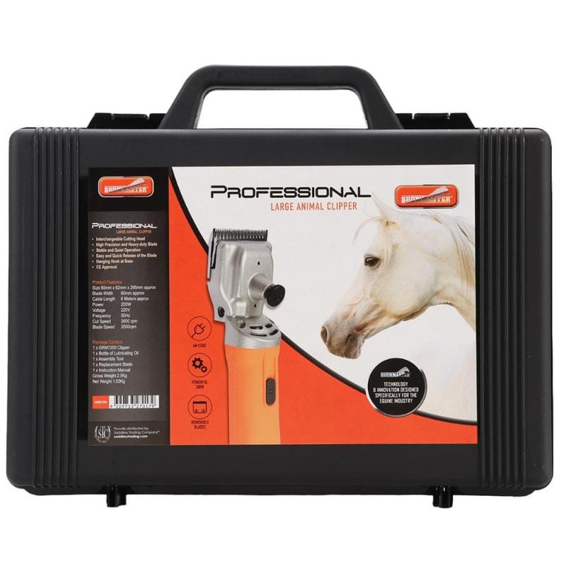 The Showmaster Professional Large Animal Clipper has a powerful 200 watt motor and interchangeable cutting head. The high precision and heavy-duty blade is removable with a quick release function that is easy to operate.